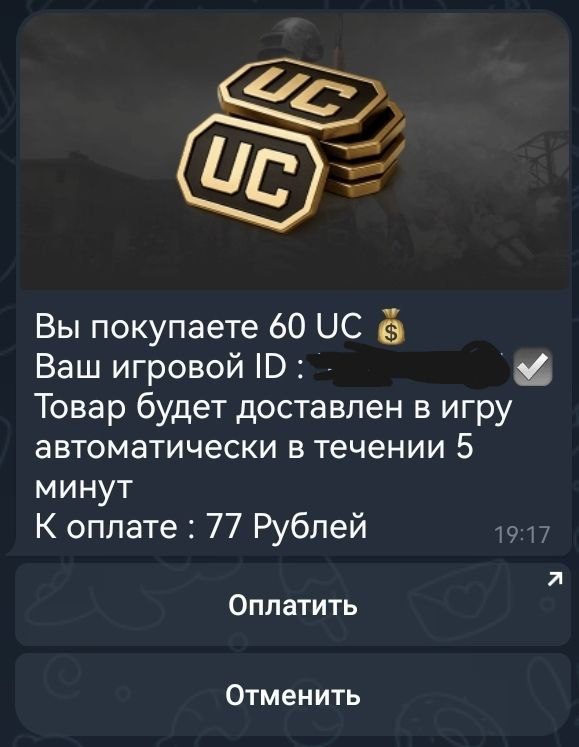 Бот UC Market в Телеграмм — проверенный ресурс, который предоставляет услуги с 2025 года. Магазин продает UC в игре PUBG Mobile.