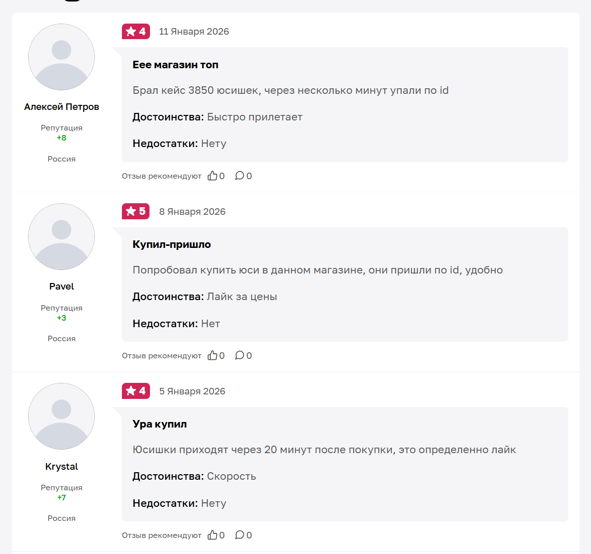 В отзывах о UC Market 24 7 о разводе не сообщается, напротив, все пользователи пишут, что монеты начисляют оперативно. Рейтинг на Отзовике составляет 4,8, все отзывы написаны в разное время, датируются 2025-2025 годом.