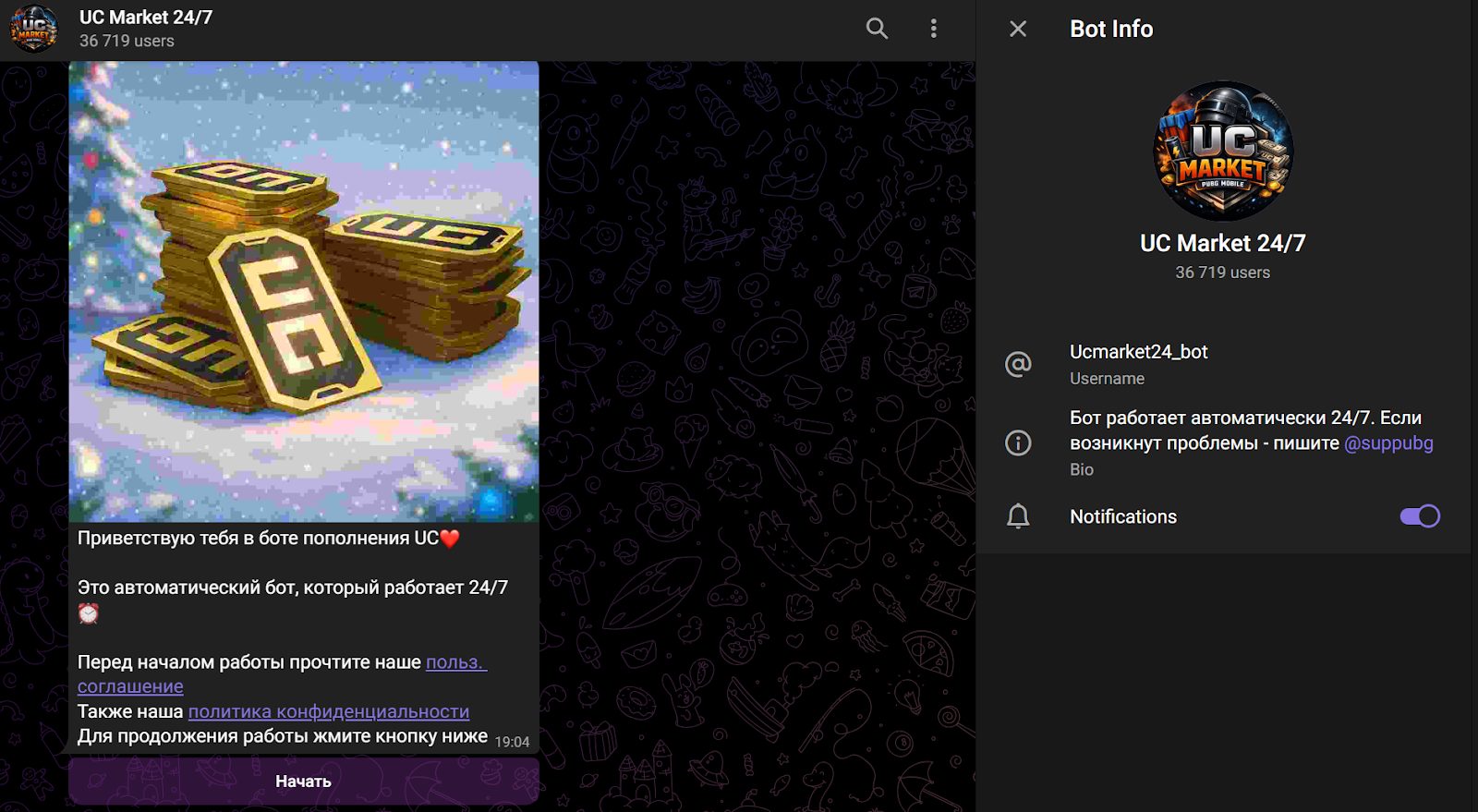 Обзор бота UC Market 24 7: отзывы о сервисе, можно ли покупать UC в боте UCMarket24