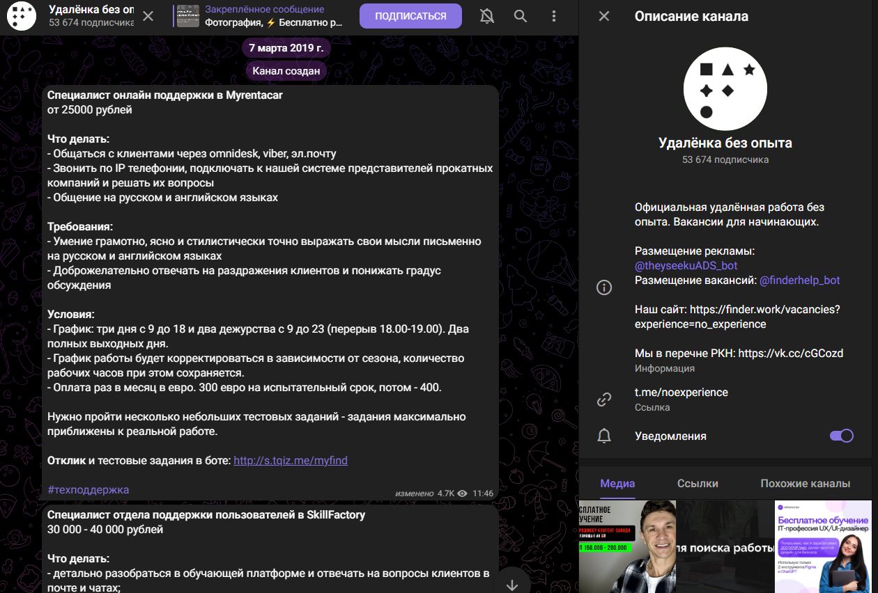 телеграмм канал удаленка без опыта отзывы