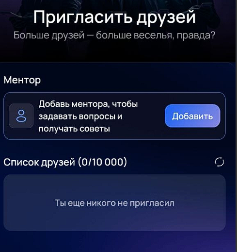 В разделе «Друзья» работает реферальная программа: игроки зарабатывают дополнительные монеты за приглашение новых участников в игру.