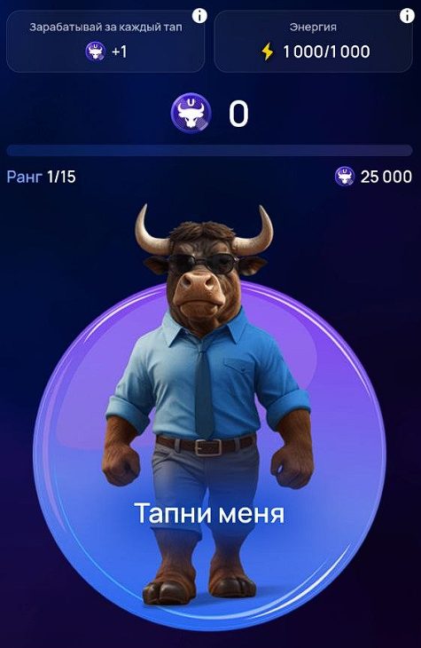 Игра Ultima Bulls запускается как мини-приложение через бот в Telegram ultimabulls com bot прямо в мессенджере. Основной процесс простой: пользователь тапает по быку и получает токены UBT, которые затем тратит на апгрейды и повышение ранга.