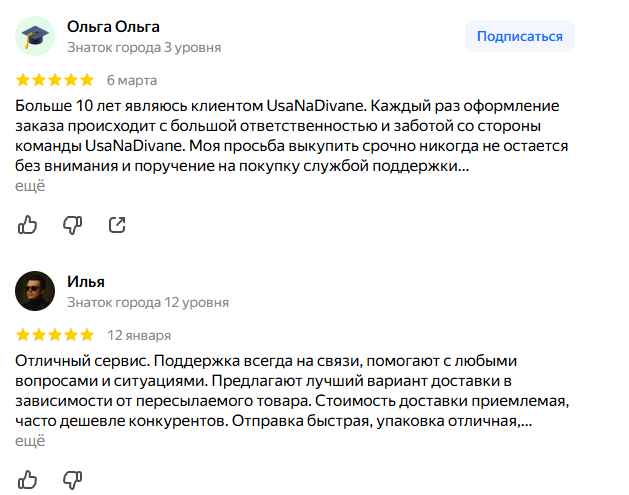 Мы проверили доставку из США и выяснили, что компания работала под разными именами, юридически зарегистрирована во Флориде, имеет аудиторию в соцсетях, но в отзывах об UsaNaDivane встречаются жалобы на потерю посылок и пустые коробки. По итогу: