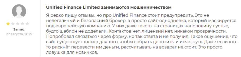 Анализ отзывов о Unifiedfinltd Com