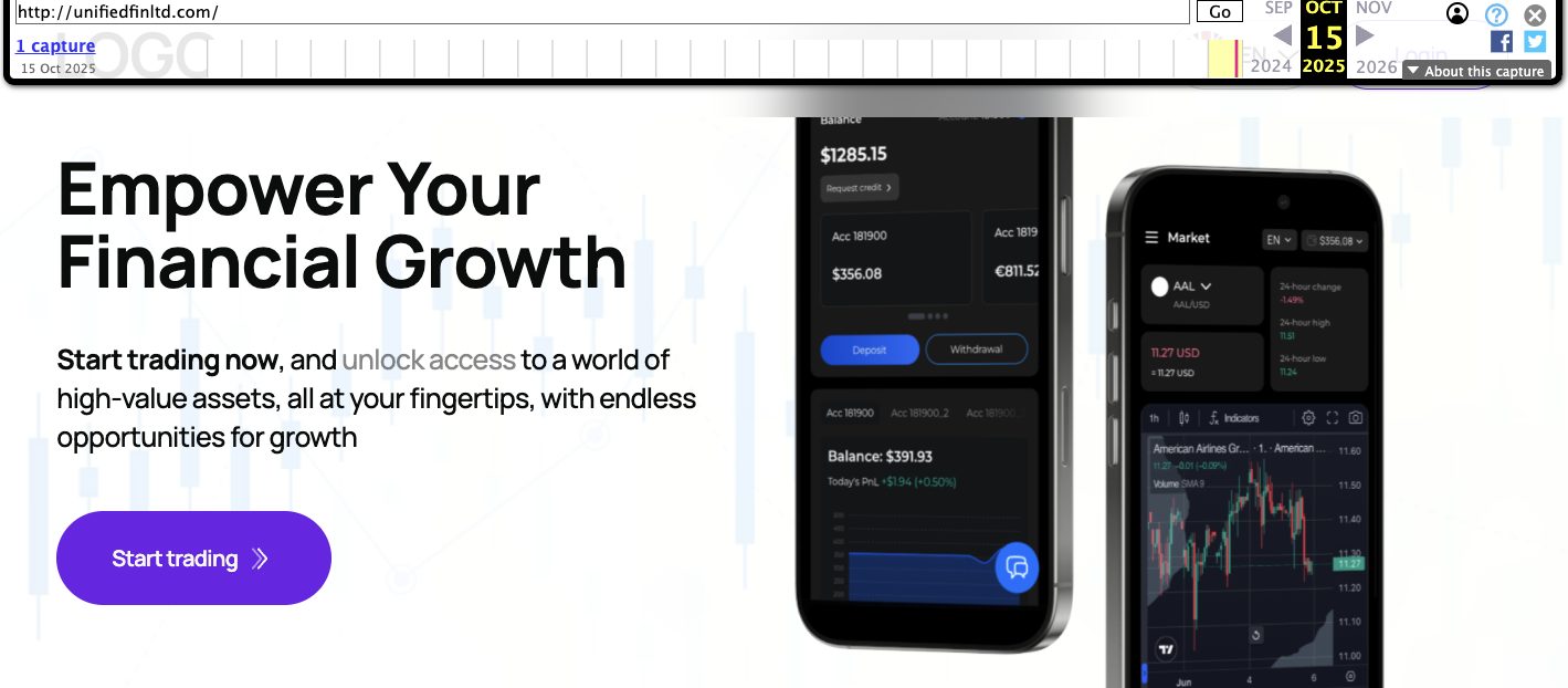 Unified Finance Limited — брокер, сайт которого внезапно стал недоступен. На площадке предлагали торговать наиболее востребованными типами активов.