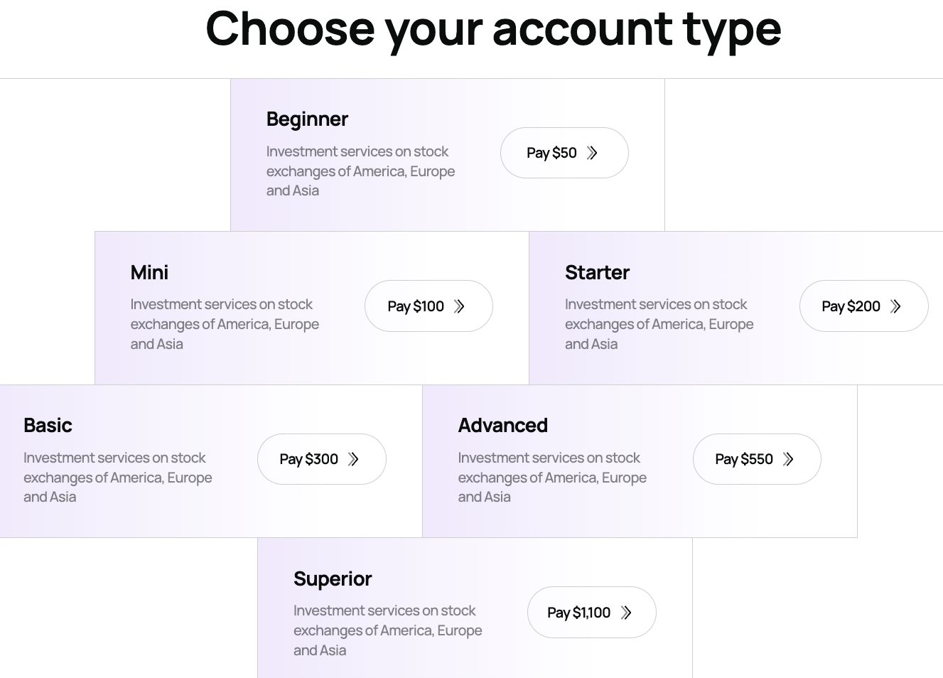 Минимальная сумма депозита, которую нужно было внести на счет, чтобы начать торговать, составляла 50 долларов. О поддерживаемых платежных методах достоверных сведений не сохранилось.