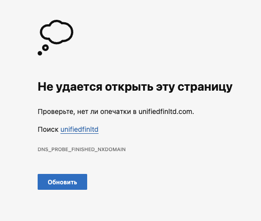 На 19 декабря 2025-го года, когда мы работаем над этим обзором, сайт Unifiedfinltd Com и личный кабинет клиента, который находился по адресу My Unifiedfinltd Com, недоступны. Никакой информации о том, почему площадка была отключена, в интернете нет.
