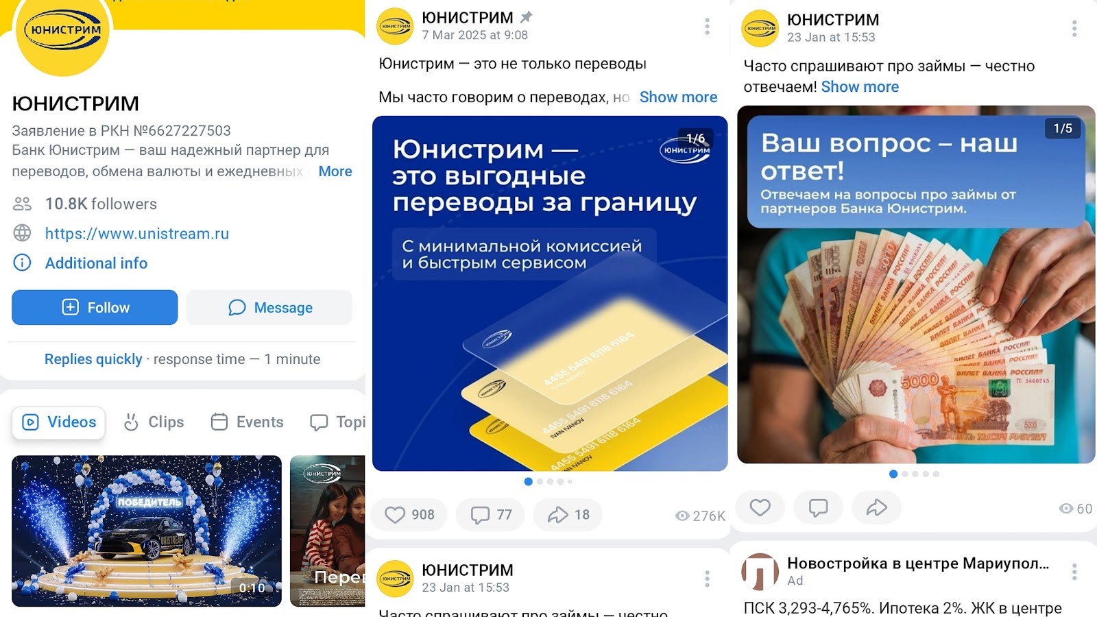 В ленте сообщества информируется о новостях банка, курсах валют. Админы пишут про обмен валюты на Юнистрим ру, правила использования системы. Контент обновляется с периодичностью в несколько дней. Крайний раз пост был размещен 26 января 2026 года.