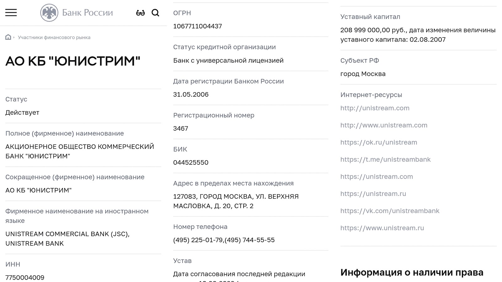 Сейчас уставный капитал компании составляет 208 999 000 рублей. Для связи с технической поддержкой платежной системы оставлен электронный адрес bpa unistream com.