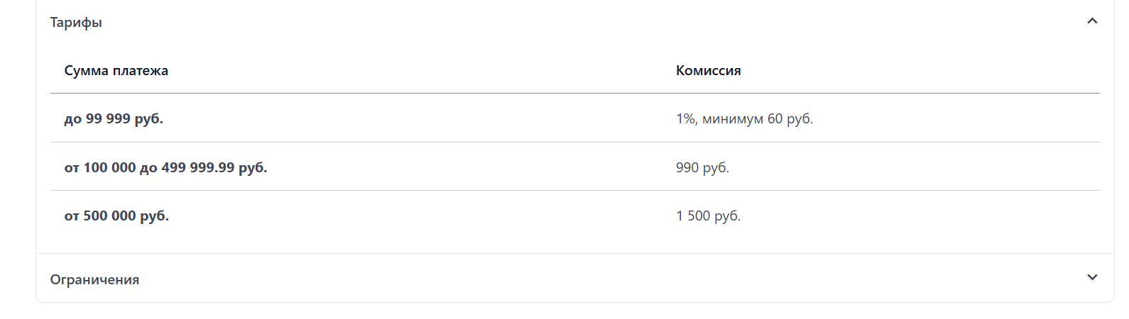 • сумма до 99 999 рублей. Взимается 1% комиссии, от 60 рублей;