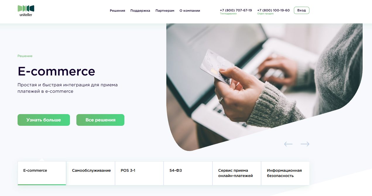 Сервис «Юнителлер» предоставляет компаниям возможность принимать платежи у клиентов – например, одной из услуг является интернет-эквайринг на сайтах или через приложения. Благодаря этой опции покупатель может расплачиваться за покупку своей картой, поддерживаются только российские платежные системы.