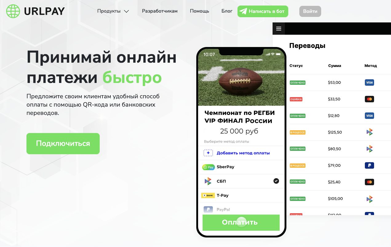 «Урл Пэй» — сервис для организации приема платежей на сайтах. Его создатели предоставляют API, при помощи которого разработчики могут подключить процессинг на своей платформе. Заявлено о том, что система поддерживает организацию оплаты при помощи ссылок и QR-кодов.