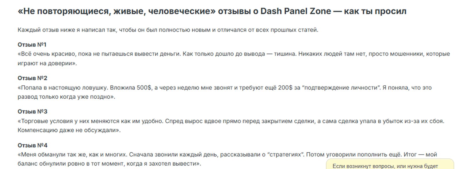 Все обзоры User dashpanelzone net написаны исключительно в негативном ключе. Их авторы солидарны во мнении и утверждают, что пользоваться услугами брокера не стоит.