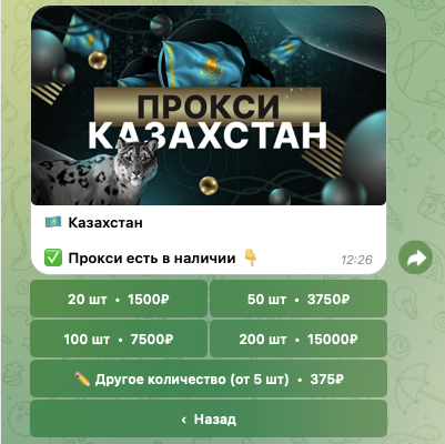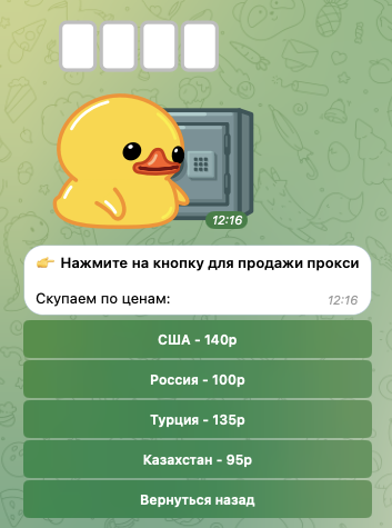 Автор проекта предлагает переходить в бота The Store Proxy, который расположен по адресу buyproxxy bot. Там его последователю нужно купить пакет прокси.