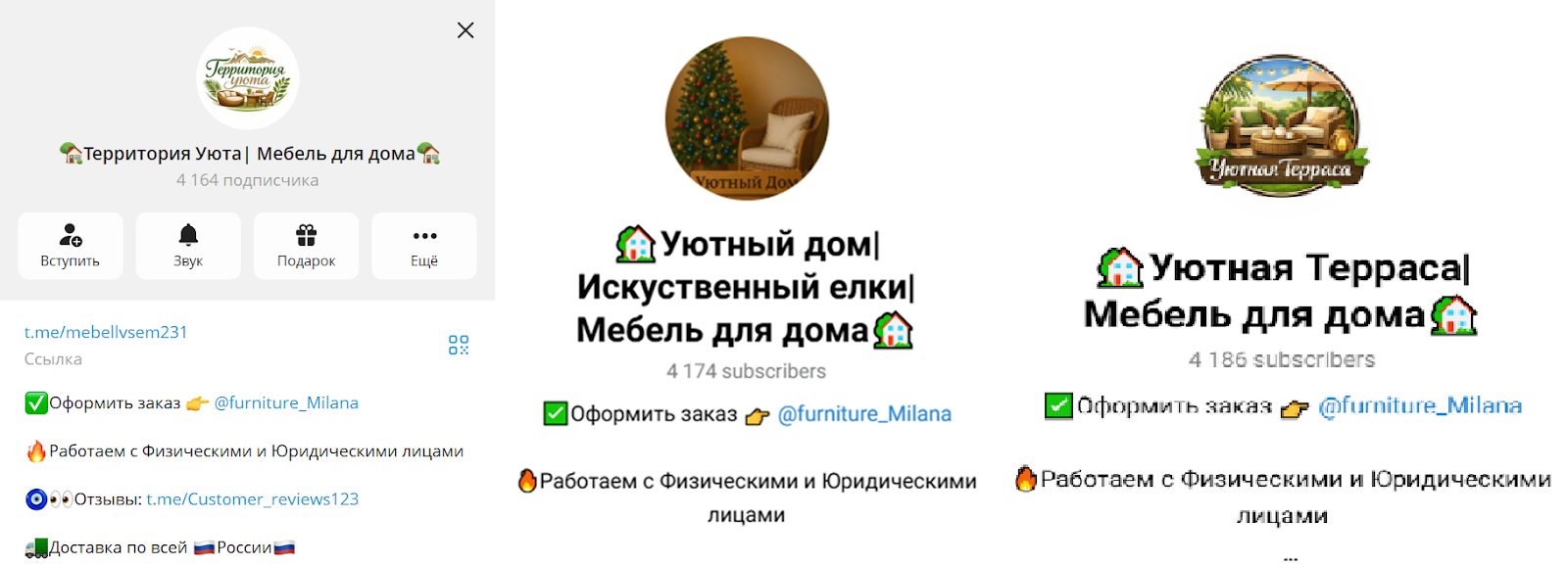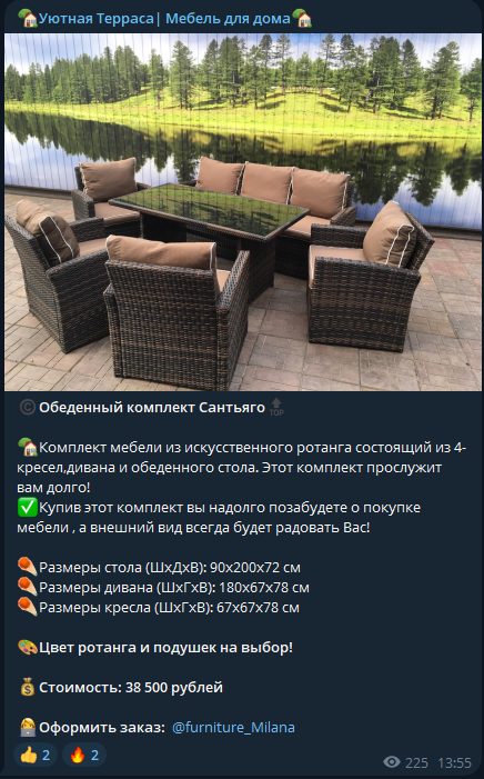 Обзор телеграмм-магазина «Уютная Терраса Мебель Для Дома»: отзывы покупателей, проверка условий заказа и разбор Furniture Milana