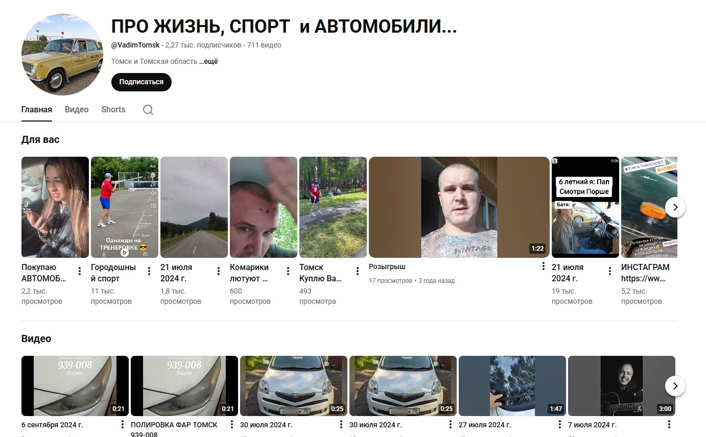 Автор занимается автомобилями, свои услуги он активно продвигает в социальных сетях. Так, помимо покупки и продажи он предлагает услуги по автоподбору, предпродажной подготовке. Сервис доступен в Томске.