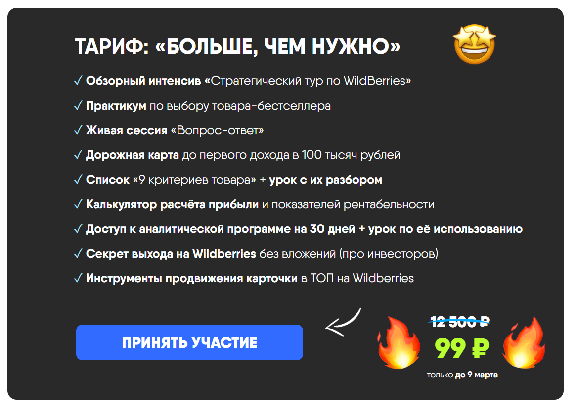 Во время проверки в марте 2026 года на своем ресурсе ментор писал о цене курса ₽12,500, но по акции можно было приобрести его всего за ₽99.