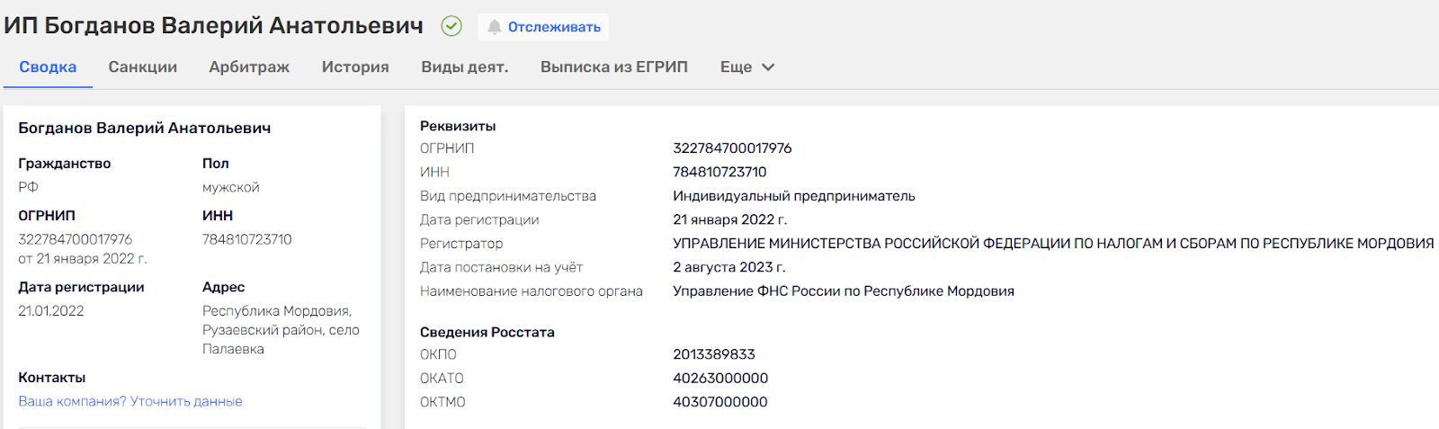 Владелец проекта утверждает, что зарабатывает миллионы рублей на маркетплейсе, причем на своем ресурсе он выкладывает скриншоты личного кабинета, хотя верифицированными такие данные назвать нельзя. Несмотря на это, ментор зарегистрирован официально в качестве ИП, что можно проверить на любом аналитическом ресурсе.