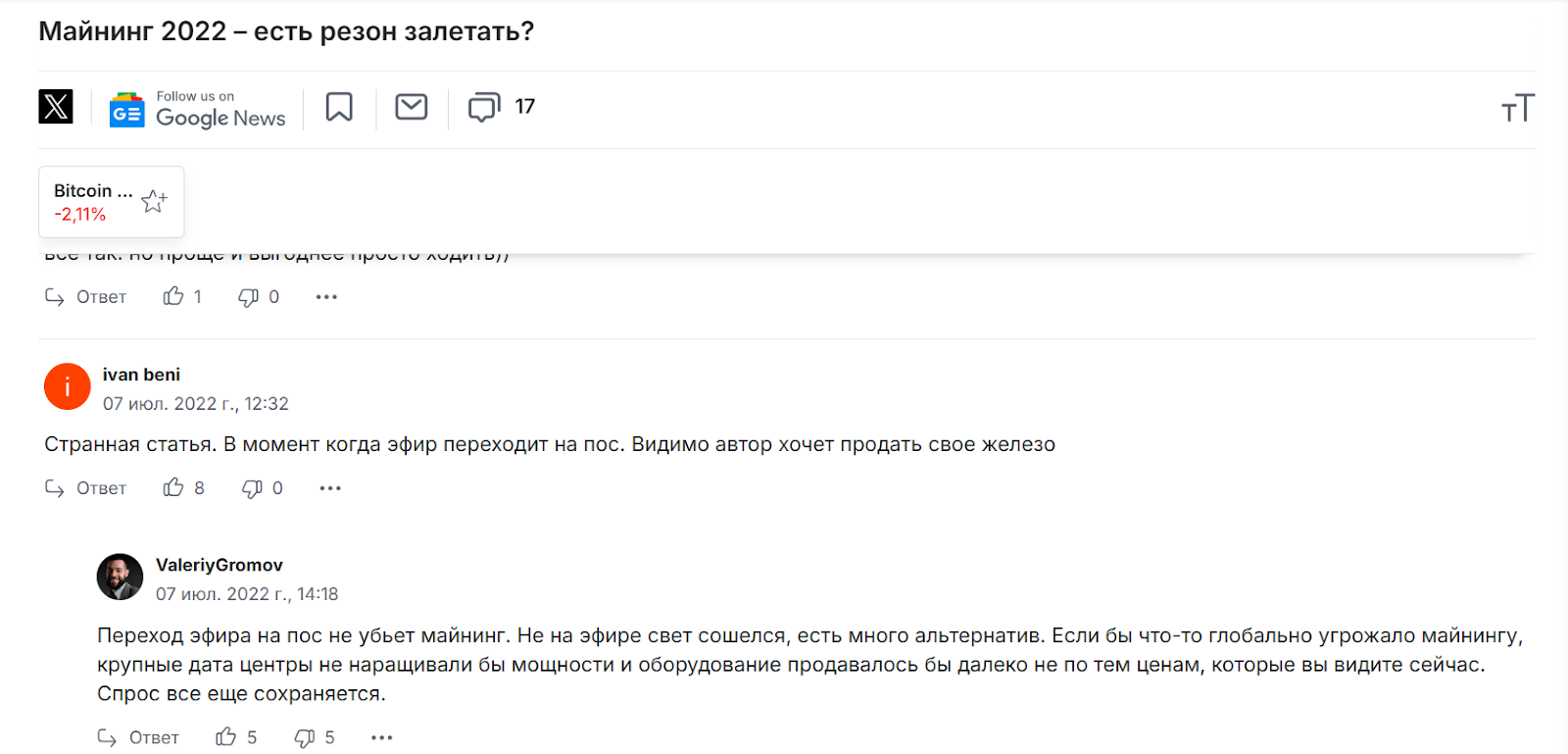 В сети тоже нет информации о Валерии Громове, как о трейдере. Нет обсуждений на форумах или веток на профильных площадках. Единственные комментарии размещена под двумя его статьями на сайте Investing.