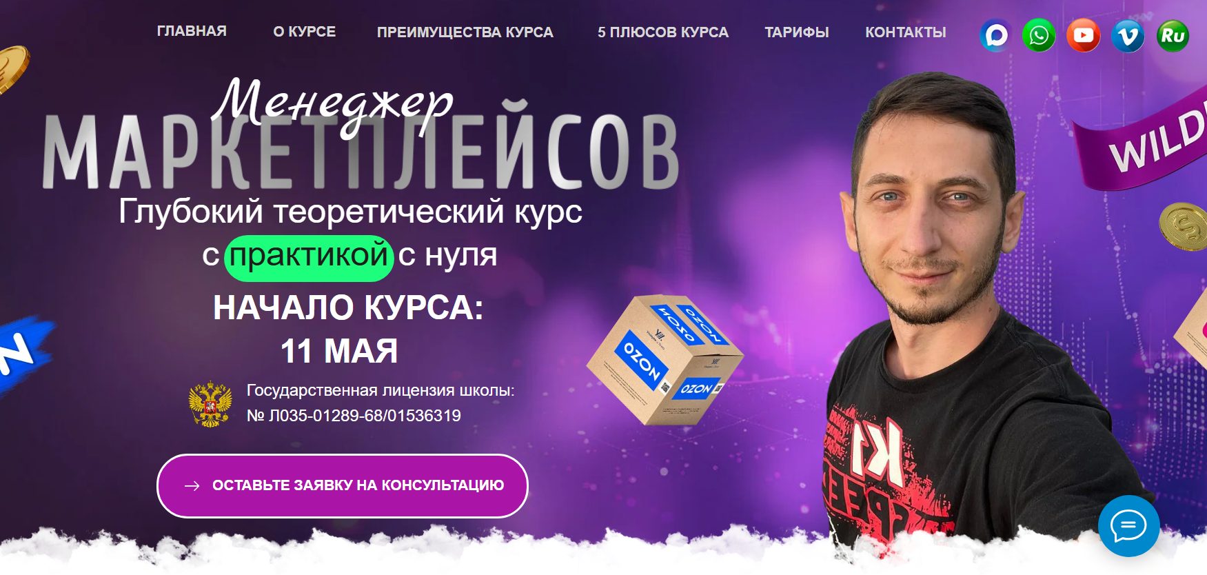 Васил Закиров создал курс «Менеджер маркетплейсов», который продвигает в одноименном сообществе в ВК (pro100wildberries) и на канале в Телеграме «Васил Маркетплейсы» (vasilzakirov). Также у автора есть официальный сайт – vasil marketplace ru.