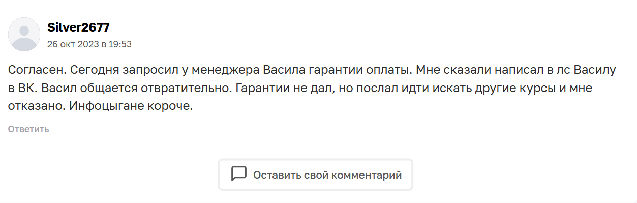 Недовольные клиенты рассказывают, что Васил может отчислить ученика и не вернуть деньги, а также общается грубо и не дает никаких гарантий эффективности обучения.