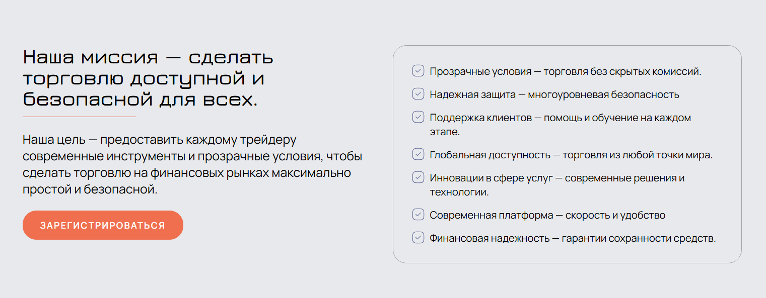 Брокер делает акцент на своих преимуществах: