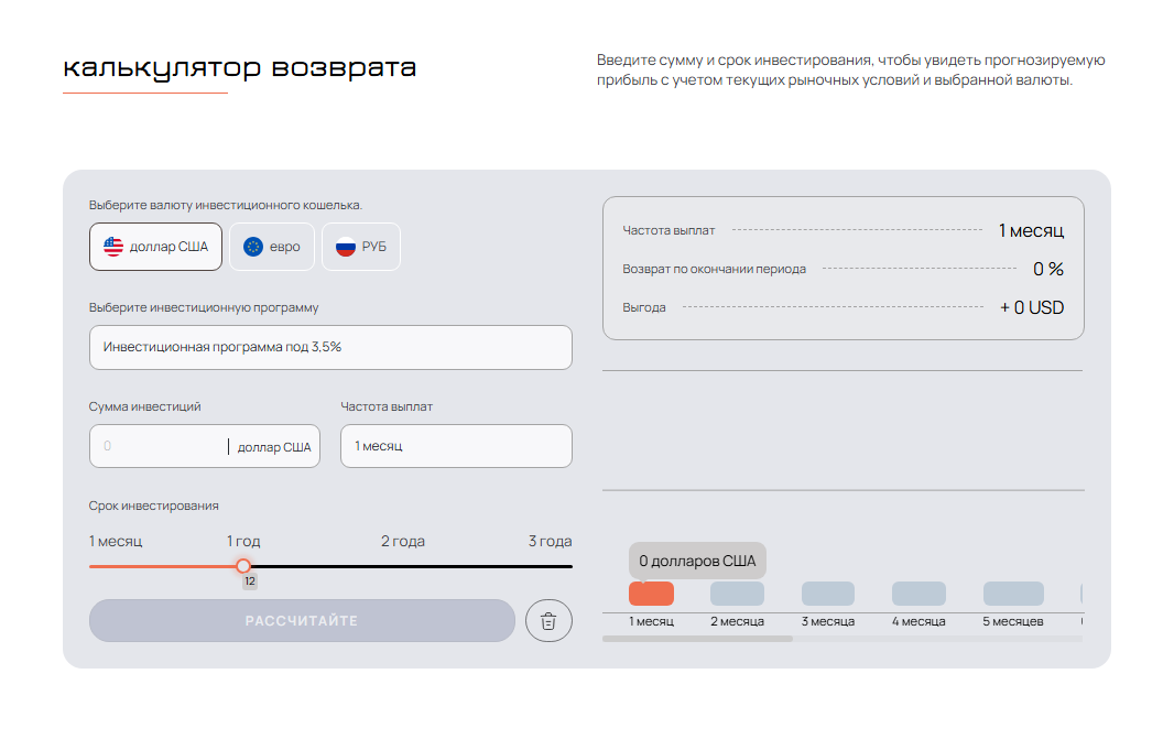На этой площадке клиенты также могут получать пассивную прибыль, вложив деньги под 3,5 годовых. Брокер не уточняет, во что именно можно инвестировать. Возможно, в те же активы, которые доступны для трейдинга. Вложить средства можно в рублях, евро и долларах на срок от месяца до 3 лет.