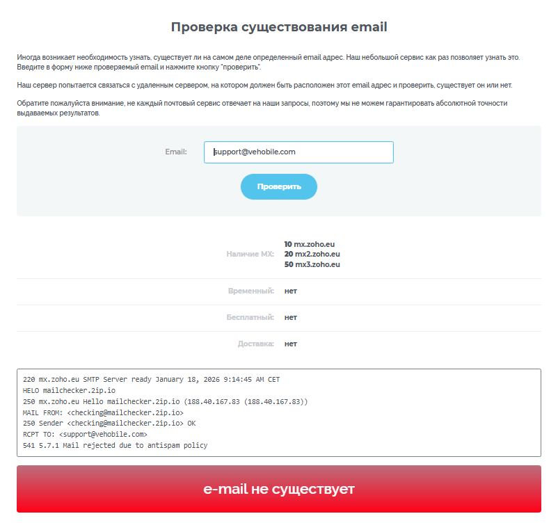 Для связи с техподдержкой трейдеров указан адрес электронной почты support vehobile com, но и он фальшивый. Других контактов нет. В соцсетях брокер себя не продвигает.