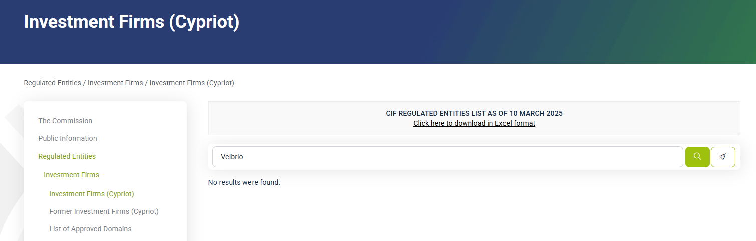 Также брокер Velbrio упоминает регистрационный номер 57887646743476. Но такой компании нет. Отсутствие реального регулятора и регистрации означает огромный риск.