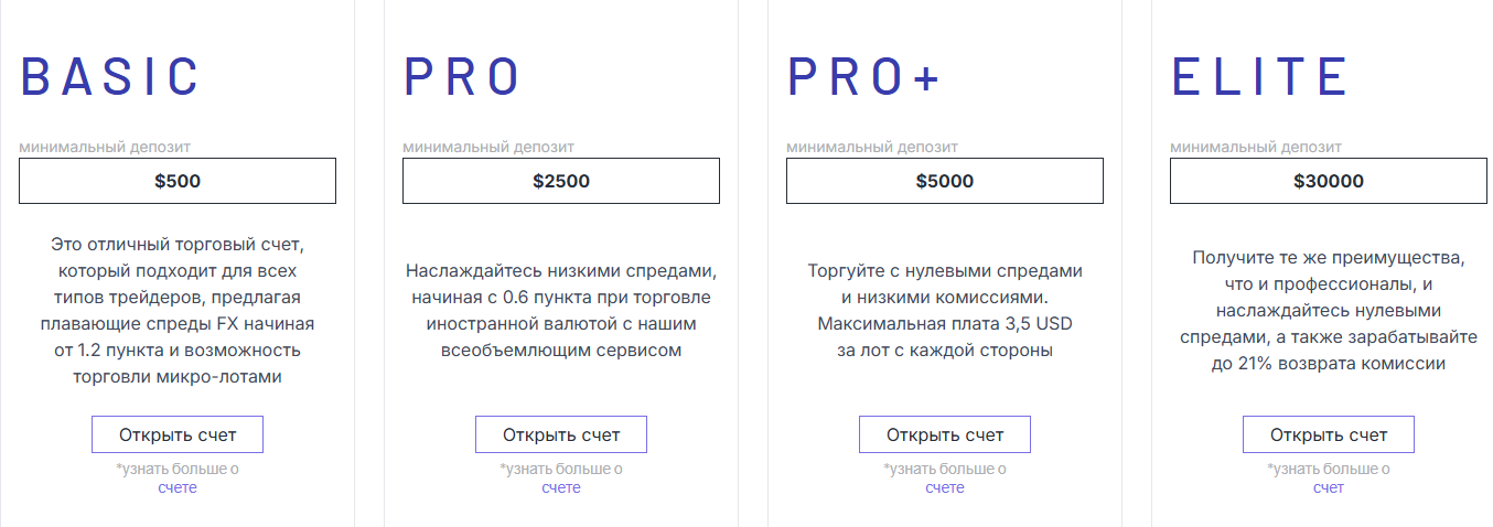 Velbrios com предлагает несколько типов счетов. Минимальный депозит составляет 500 долларов. Это очень высокая сумма для старта. Надежные компании обычно разрешают начинать с 10 долларов.