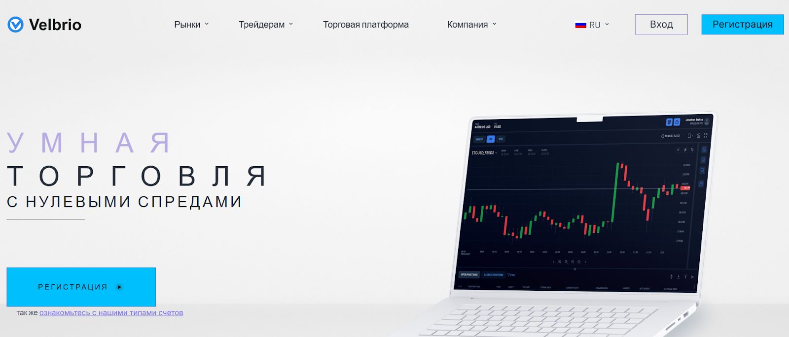 Официальный сайт брокера Velbrio – velbrios com. Компания предлагает «умную» торговлю активами и обещает следующие преимущества: