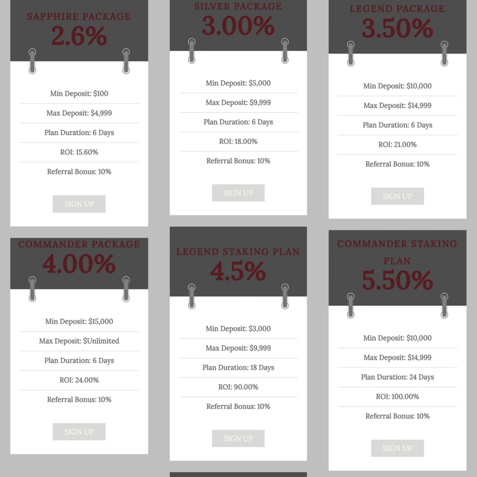 - “Commander Package”. От 15 000 долларов вложений, 6 дней, прибыль 4%, ROI 24%;