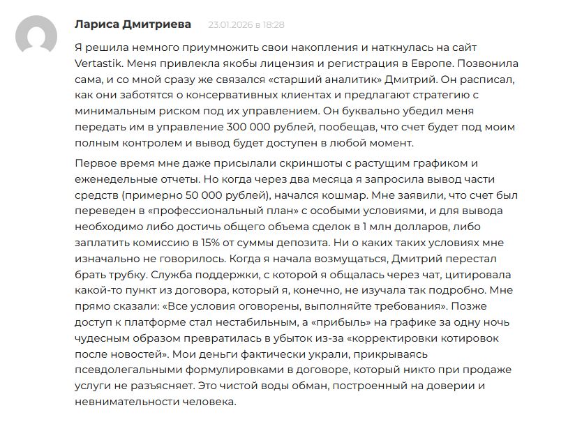 Обзор брокера Vertastik: отзывы реальных пользователей и анализ деятельности Vertastik com