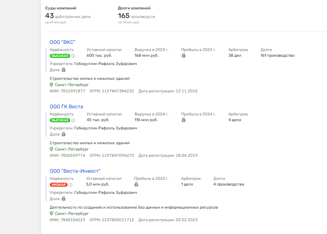 Габидуллин – застройщик, который пытается реализовать непроданные объекты недвижимости. С этой целью и была создана инвестиционная платформа «Веста Инвест» с уставным капиталом в 5 миллионов рублей.