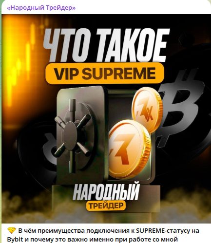 Статус, который получат рефералы, называется Supreme. Это означает, что заработок автора ТГК зависит от реферальных отчислений площадок. Дополнительно Виктор просит за свою работу определенный процент от полученного профита, но какой именно — сразу не сообщает.