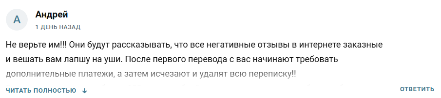 - Жалобы клиентов на развод на деньги подтверждают возможную мошенническую деятельность автора.