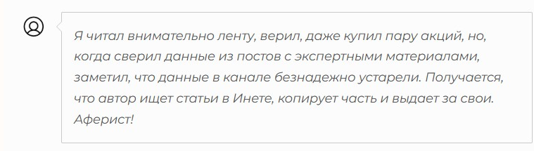 • в Интернете только негативные отклики о трейдере и его телеграмм-канале – клиенты говорят о высоком риске мошенничества, они недовольны контентом.