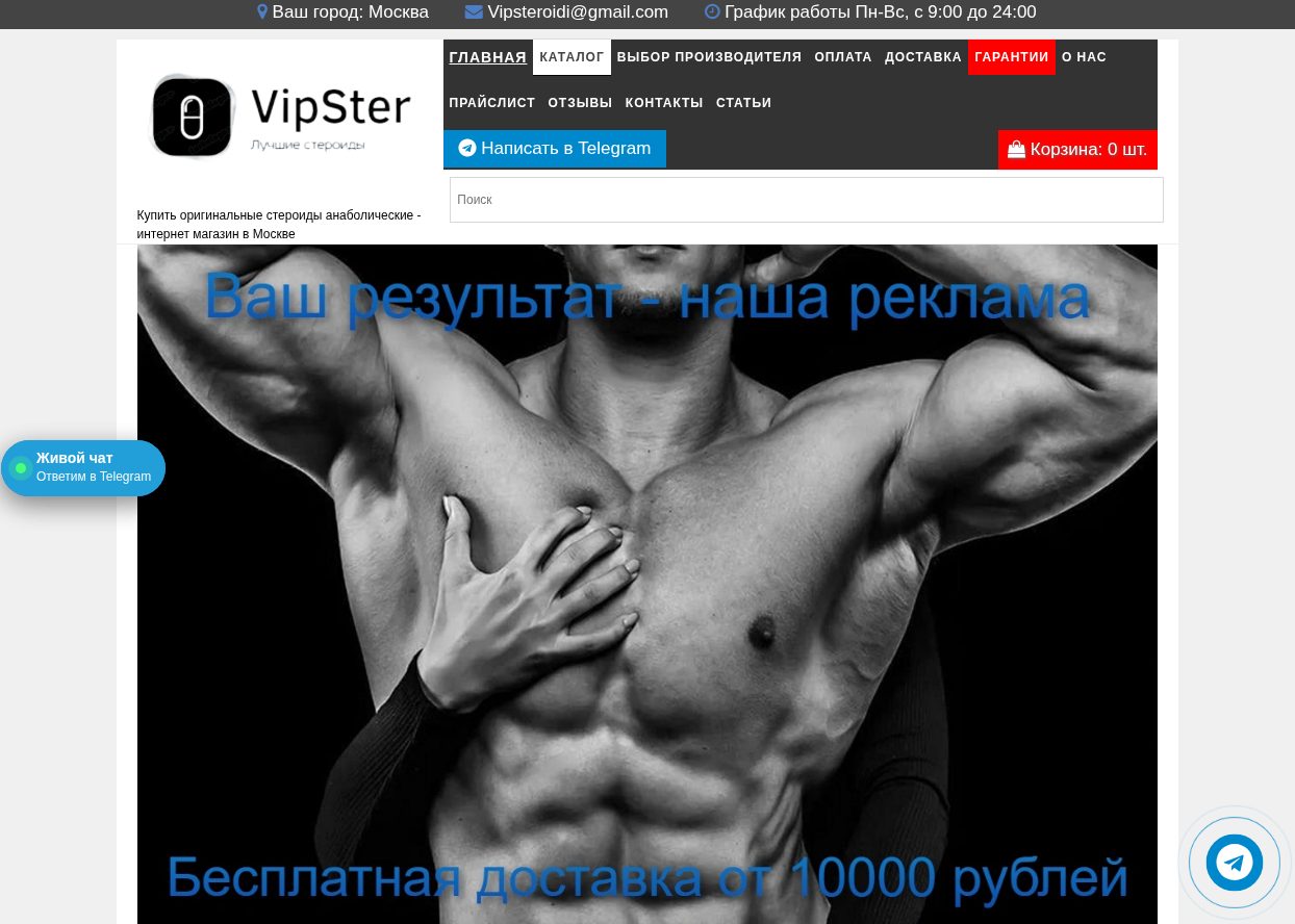 Випстер — сеть интернет-магазинов спортивной фармакологии, работающая через сайты vipster net, vip-steroid com и Телеграм-канал @steroid_kupit. Продает анаболические стероиды, гормоны роста и сопутствующие препараты с доставкой по России. Разберемся, как устроена эта сеть, что говорят покупатели на независимых платформах и какие риски несет работа с подобными магазинами.