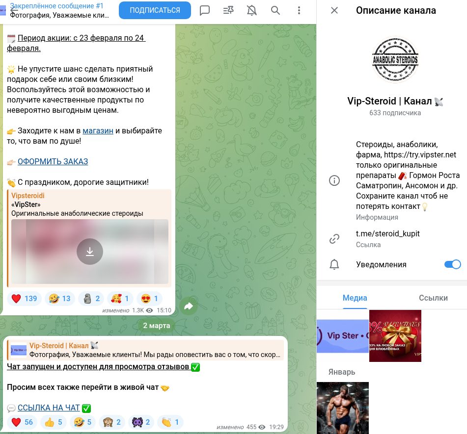 Обзор Випстер: отзывы, анализ ТГ-канала @steroid_kupit и сайтов vipster net и vip-steroid com — надежны ли, стоит ли здесь что-то покупать