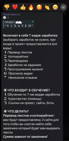 При этом, никаких деталей и подробностей в открытом доступе нет. Получить больше информации можно в личной переписке. Участники проекта находят своих подопечных в Телеграме, ВК и других социальных сетях. И авторы обещают, что предоставят все доказательства того, что мошенничество на Visaved полностью исключено.
