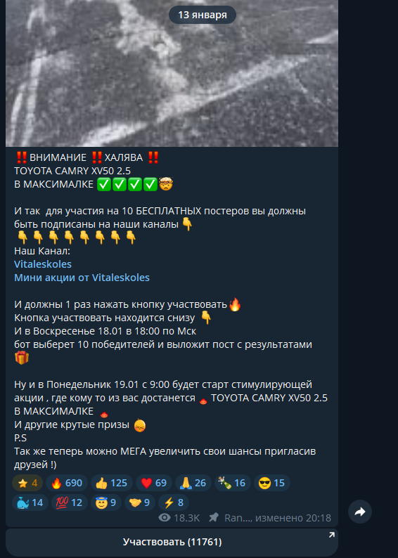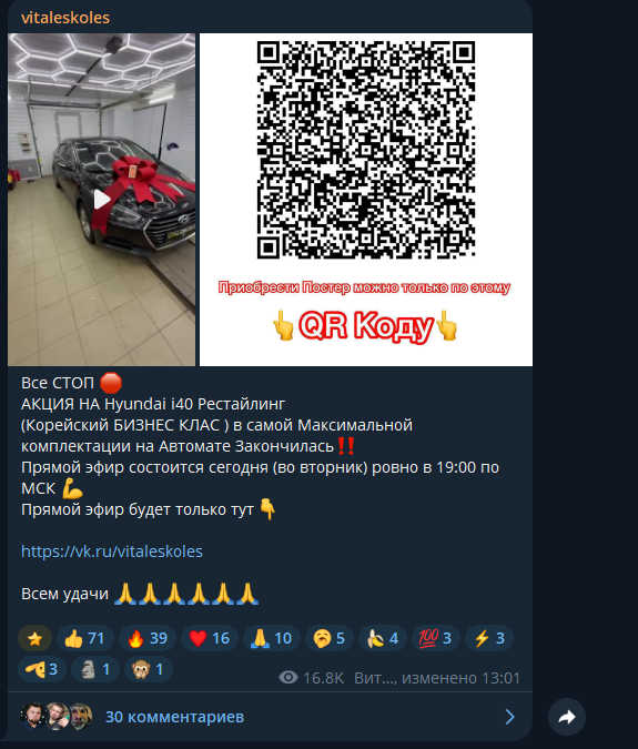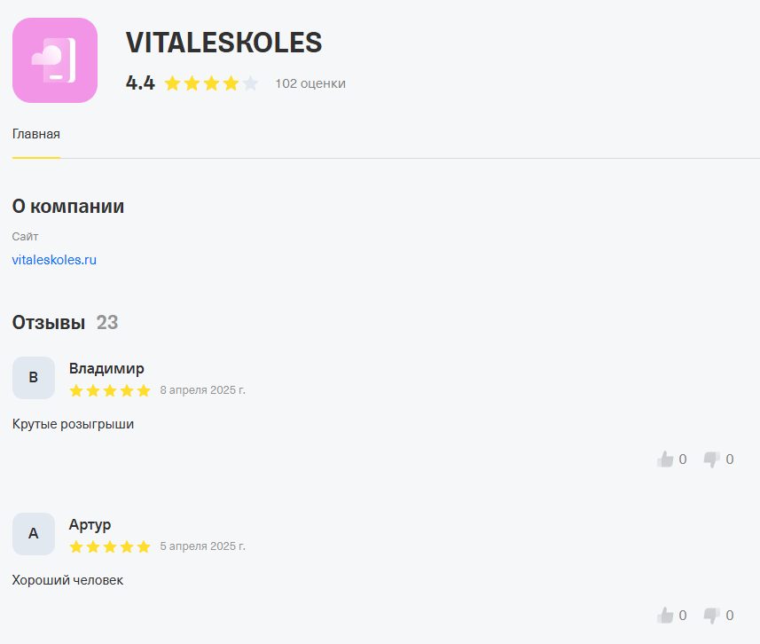 Тем не менее VitalesKoles зарегистрирована официально и имеет немало положительных отзывов о розыгрышах в телеграмме.