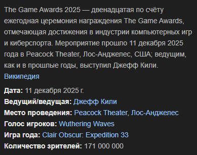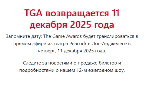 Создатели же явно уточняют, что выбор идет якобы лучшей игры 2025-го. Здесь даже указано, когда и где будет проходить премия.