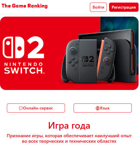 Сверху почему-то представлен баннер с приставкой Nintendo Switch 2, а также есть возможность смены языка.