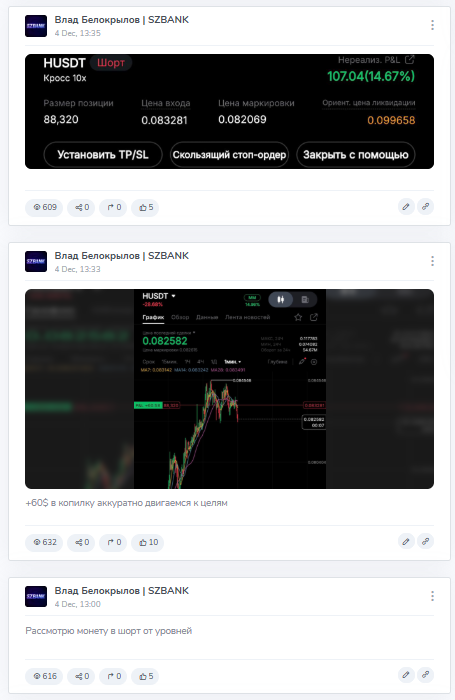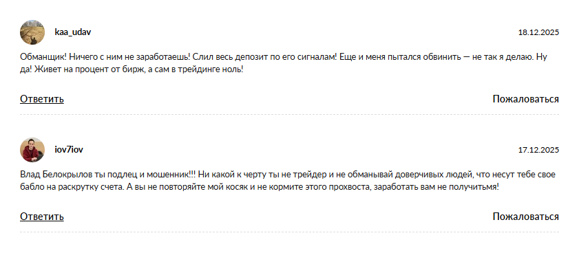 В ленте телеграмм-канала «Влад Белокрылов | SZBANK» встречаются скрины с комментариями подписчиков, они якобы подтверждают честность инвестора. Отметим, что такие посты легко сфабриковать, поэтому к ним нет особого доверия.