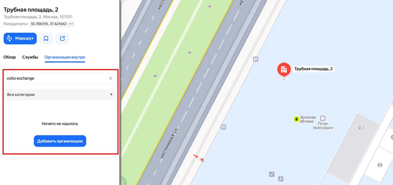 Адрес офиса компании, который якобы расположен в Москве на пл. Трубной, 2, также фейковый. Это бизнес-центр, среди арендующих организаций обменный пункт не указан.
