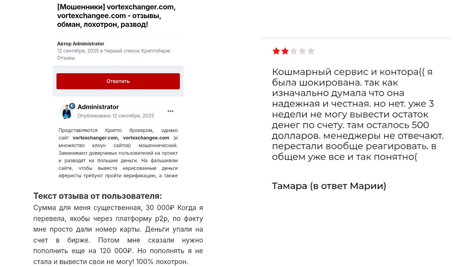Помимо вышеупомянутого, пользователи жалуются на отсутствие поддержки от менеджеров. Оставить свой отзыв о Vortex Exchange можно под обзором.