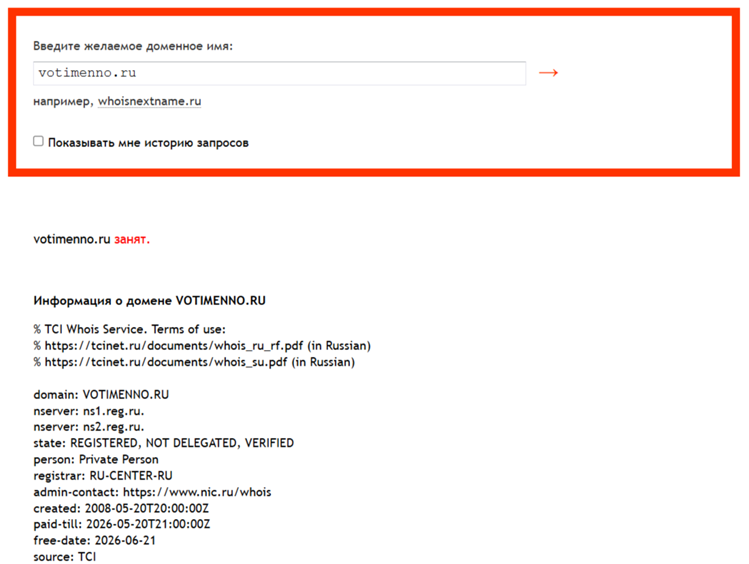 На сайте Votimenno Ru указано, что он работает с 2008 года. Эта информация подтвердилась, поскольку именно тогда был зарегистрирован доменный адрес. За годы существования на сайт площадки добавлялись некоторые изменения, но суть работы осталась прежней. Доменный адрес продлен до середины 2026 года.