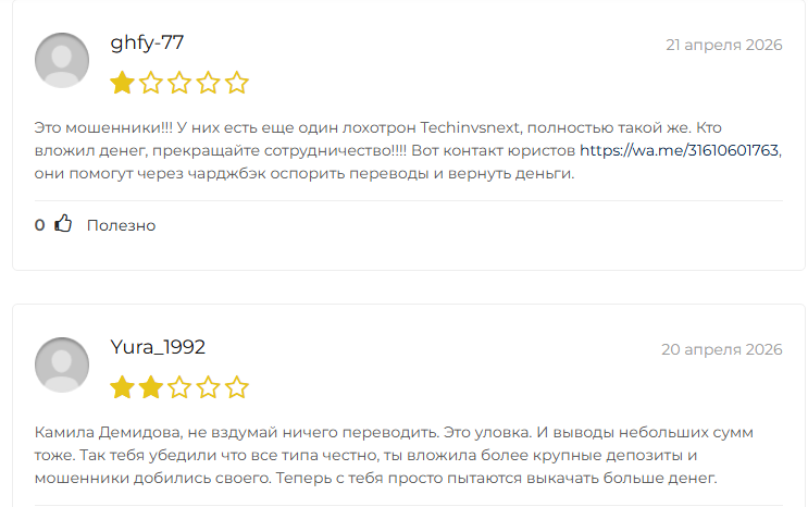 Отзывы о way techinvssmart com преимущественно негативные. Пользователи указывают на признаки мошеннической схемы и проблемы с возвратом средств.