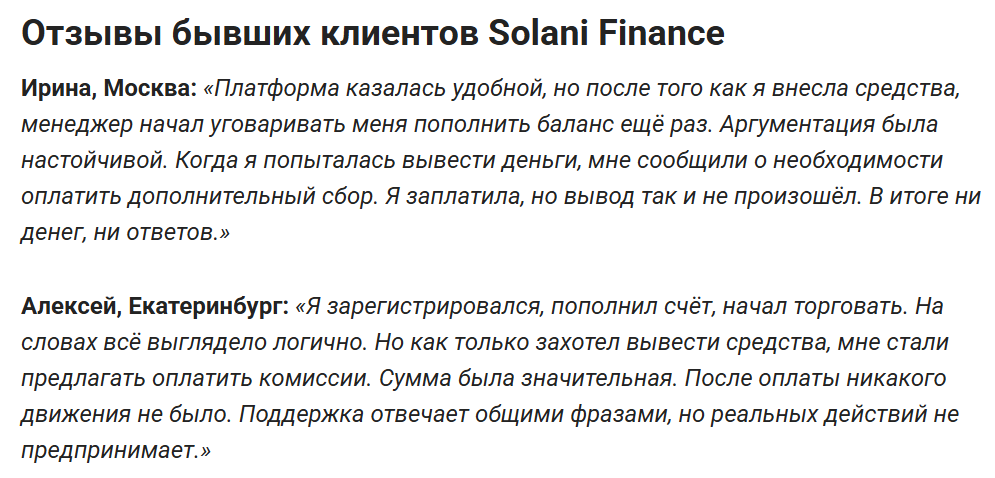 Обзор брокера Solani finance: отзывы пользователей о «Солани Финанс» и анализ деятельности