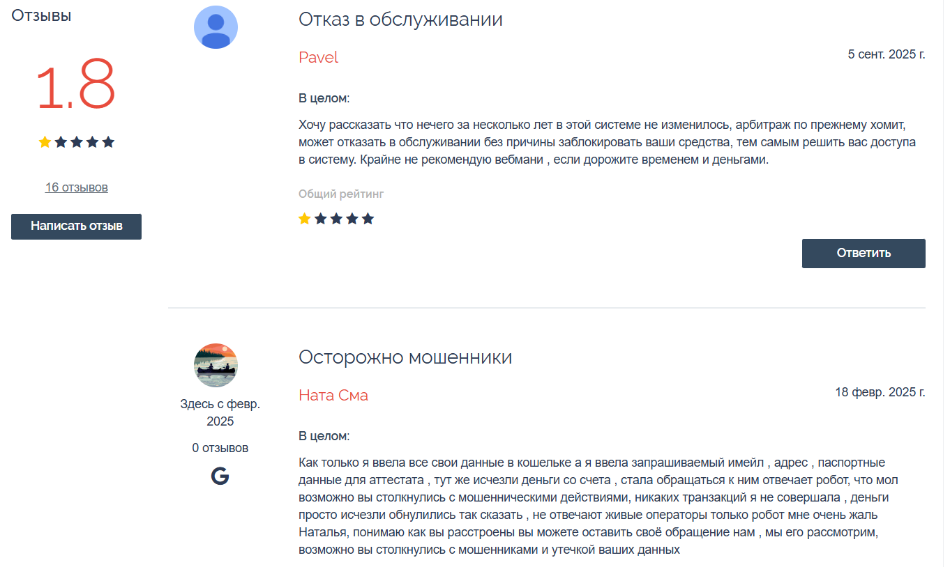• Свежие отзывы о WebMoney Transfer отрицательные, так что риски для клиентов потерять свои деньги увеличиваются.